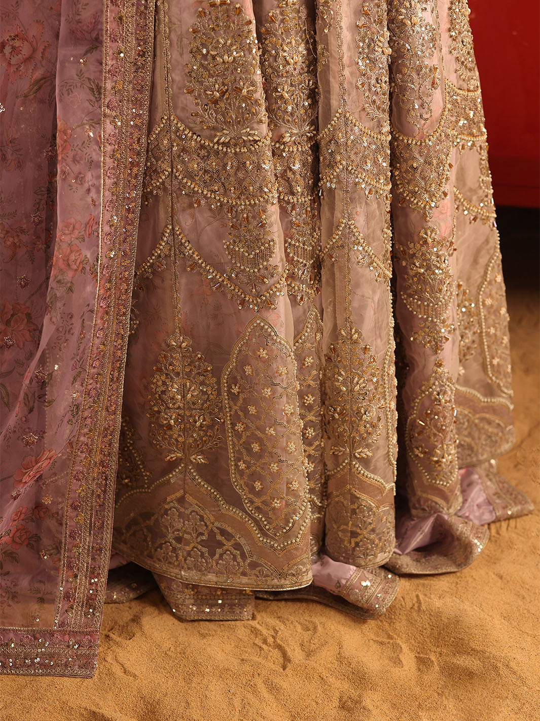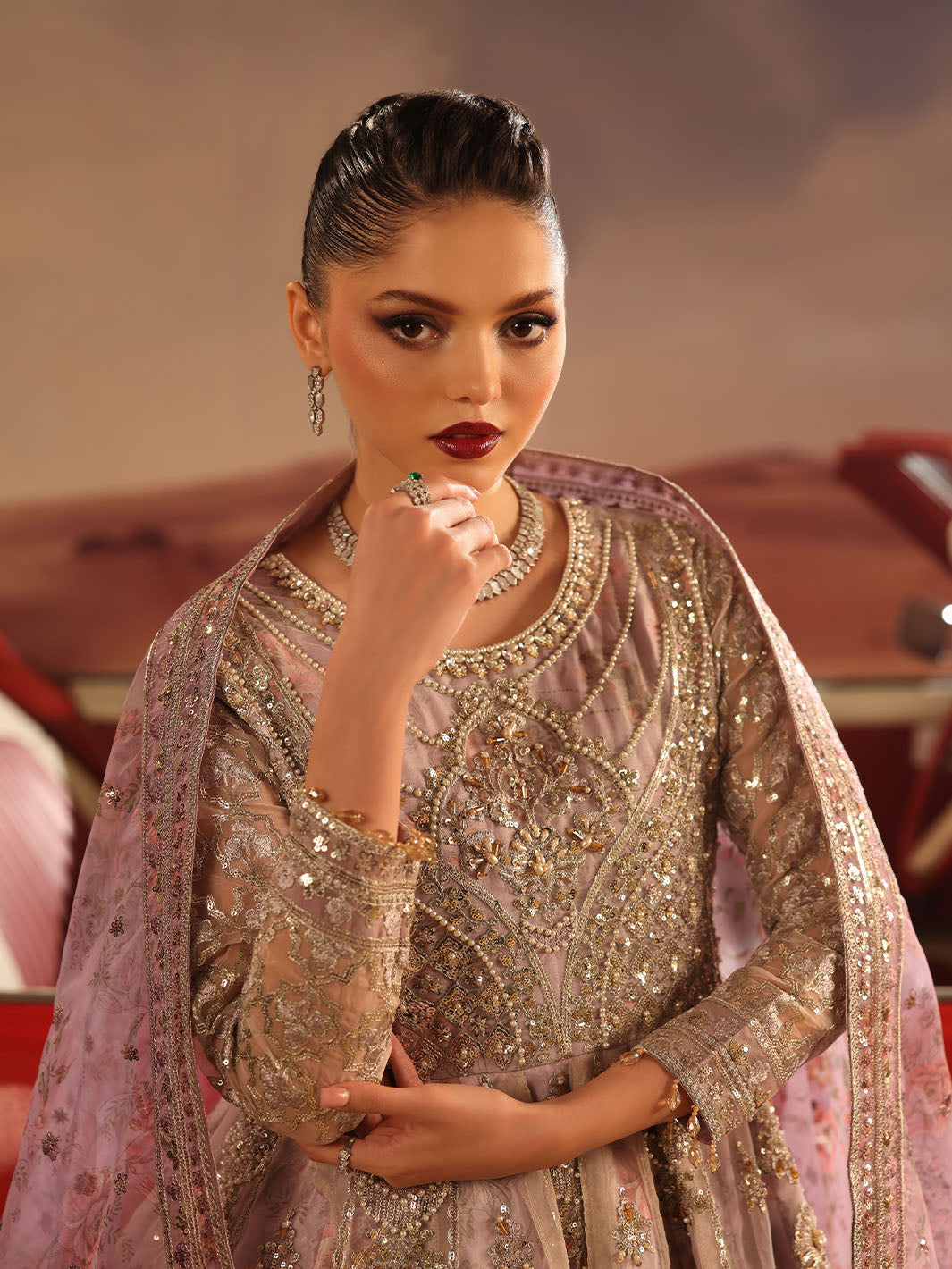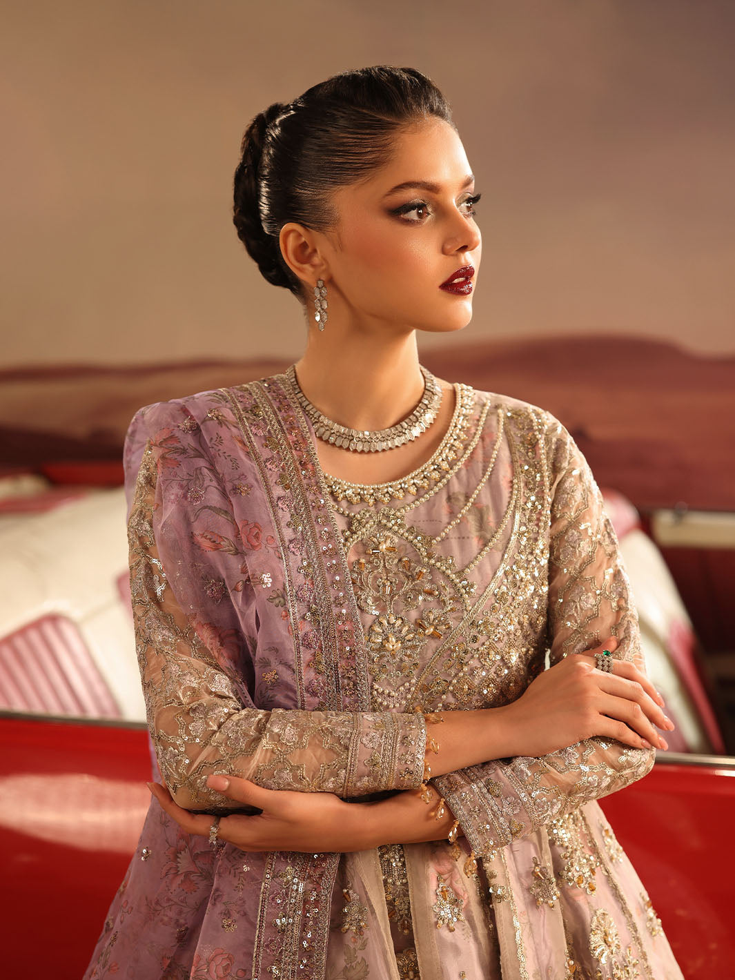 A master piece by LINA BY SHAHJAHAN introduced three piece out fit This image captures a striking fusion of traditional south Asian high fashion and cinematic,desert inspired aesthetic.
