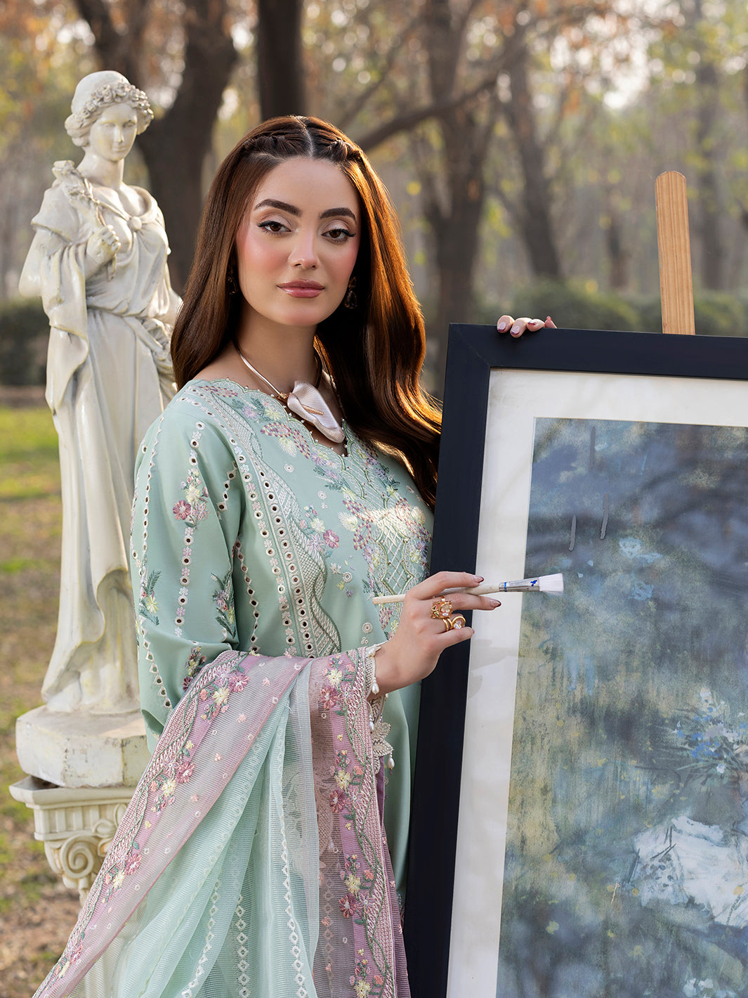 Looks and feel luxurious with Shahjahan this shows topping ensemble with its beautiful adda work and embroidery. Something new in summer collection.