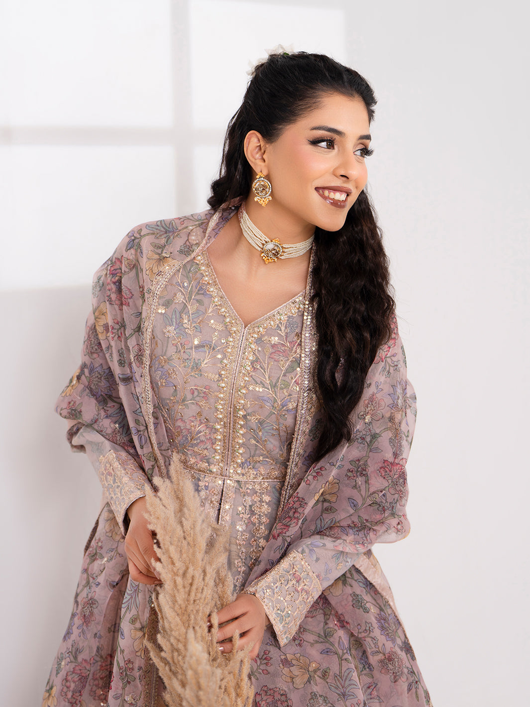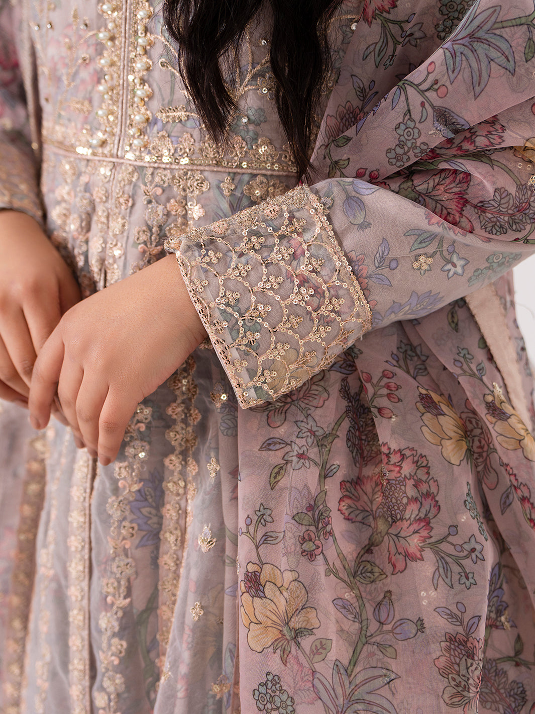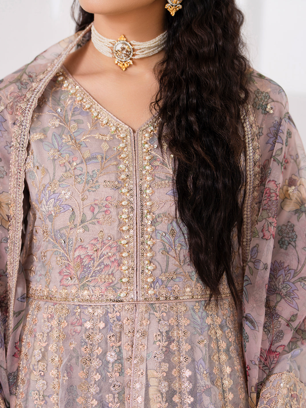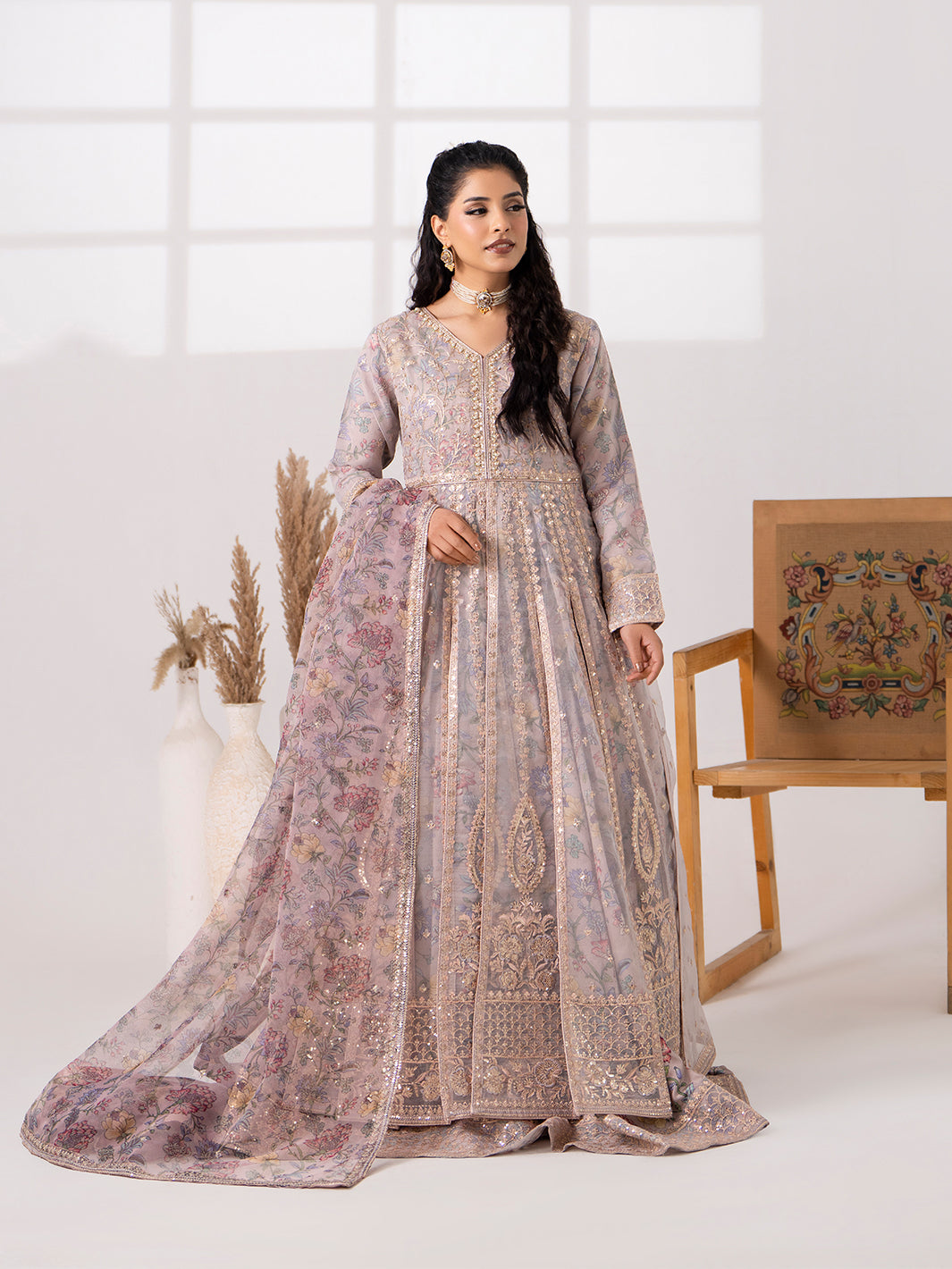 Elegant embroidery and adda work on maxi