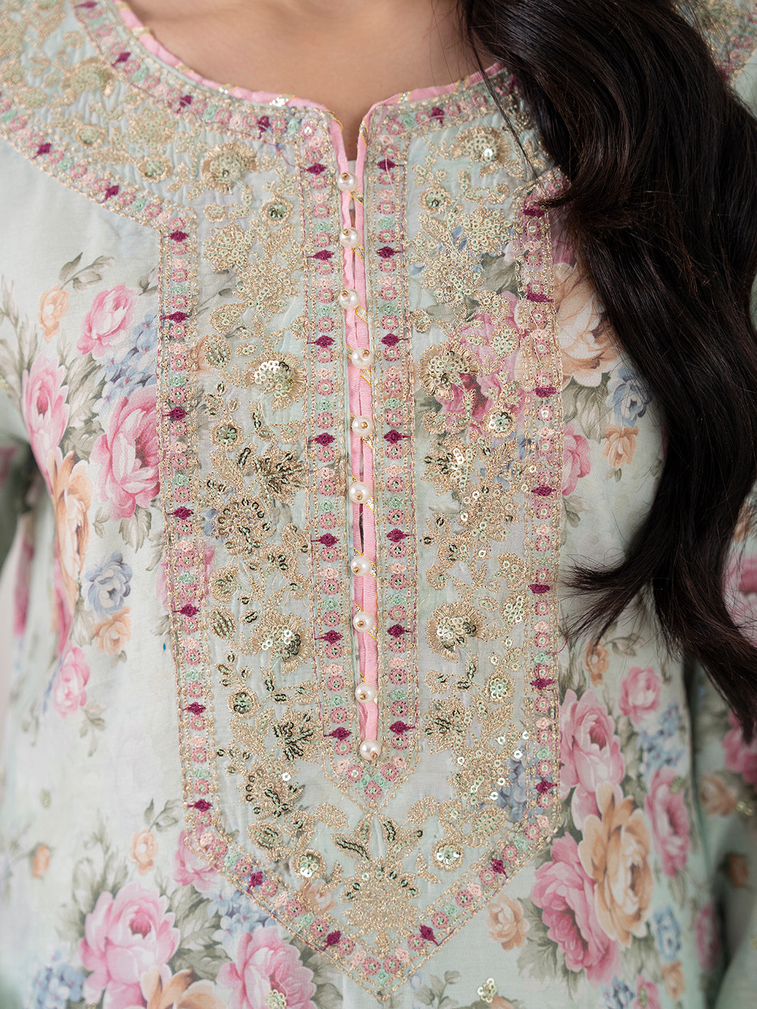 Beautiful viscos digital print fabric with elegant embroidery